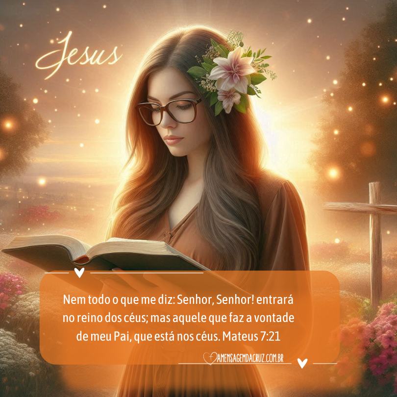 Nem todo o que me diz: Senhor, Senhor! entrará no reino dos céus; mas aquele que faz a vontade de meu Pai, que está nos céus. Mateus 7:21